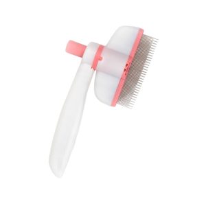 Cepillo con un diseño ergonómico, cuenta con botón de auto limpieza que permite una limpieza práctica y rápida. Material: Plástico Color: Azul, rosado Disponible: Razas pequeñas, medianas y grandes