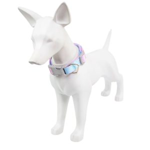 Collar bicolor para mascotas, cuenta con hebilla ajustable, anillo tipo D para fijar la correa y broche de seguridad. Material: Poliéster Color: Rosado con azul, verde con lila, rosado con amarillo Disponible: Razas pequeñas, medianas y grandes