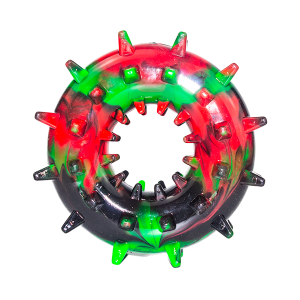 Juguete dona multicolor para mascotas, cuenta con textura ideal para la limpieza de los dientes y con sonido chillón interno. Material: Plástico Color: Verde/rojo, azul/amarillo Disponible: Razas medianas y grandes
