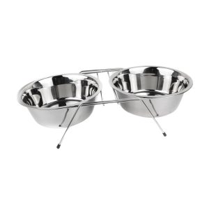 Comedero para mascotas doble, cuenta con una estructura elevada, antideslizantes en cada extremo y bowl extraíbles. Material: Acero inóxidable Color: Plateado Disponible: Razas pequeñas, medianas, grandes.