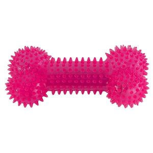 Hueso chillón, cuenta con una textura de púas, sonido y luz led interna. Material: Plástico Color: Azul, rosado, rojo, morado Disponible: Razas medianas y grandes.