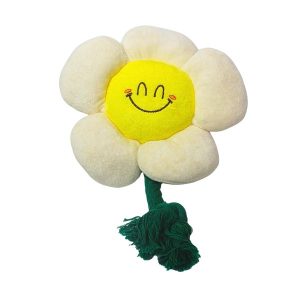 Juguete de tela con diseño de flor, cuenta con sonido chillón interno y cuerda para morder. Material: Poliéster Color: Rojo, beige Disponible: Razas medianas y grandes
