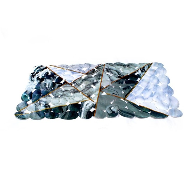 Alfombra para piso de ducha. Material: PVC DiseƱo: Negro con blanco, rosa con azul