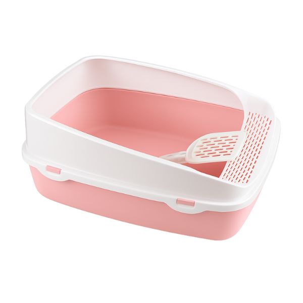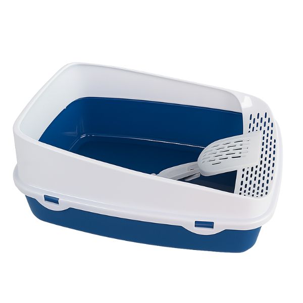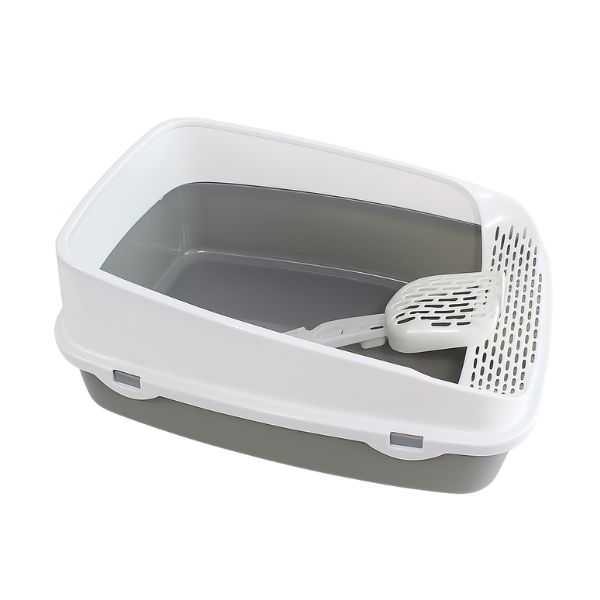 Arenera semicerrada para mascotas. Trae pala. Material: Plástico Color: Azul, rosado, gris Disponible: Razas pequeñas