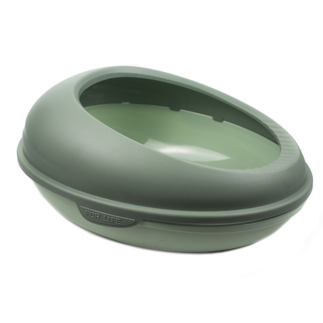 Arenera semicubierta para mascotas. Trae pala. “Material: Plástico Color: Amarillo, verde, naranja Disponible: Razas pequeñas.”