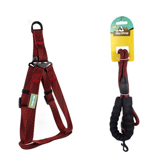 Arnés con patrón a rayas, cuenta con hebillas ajustables, broche de seguridad, correa redonda y anillos tipo D para fijarla. Material: Poliéster, metal Color: Rojo, naranja, azul, beige Disponible: Razas pequeñas Medidas: TALLA M CUELLO 40-53 CM TORSO MIN-MAX 56-58 PESO MAXIMO – APROX 11-23 KG, TRAILLA 1,20 CM