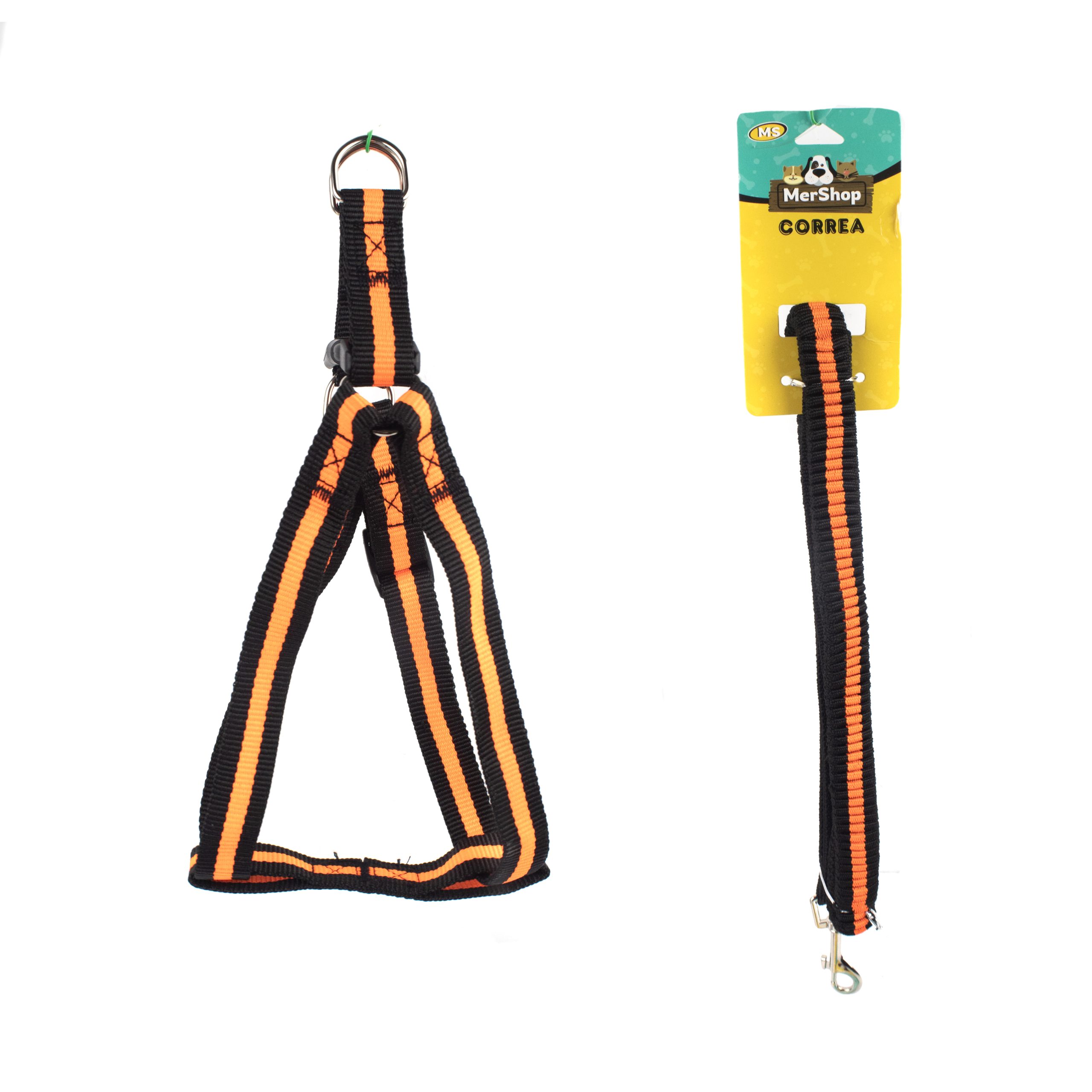 Arnés bicolor, cuenta con correa resortada, hebillas ajustables, broche de seguridad y anillo tipo D para fijar la correa. Material: Poliéster, metal Color: Rojo, naranja, azul Disponible: Razas pequeñas. Medidas: TALLA S CUELLO 30-41 CM TORSO MIN-MAX 41-53 CM PESO MAXIMO – APROX 5-11 KG, TRAILLA 1,20 CM