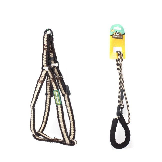 Arnés bicolor, cuenta con hebillas ajustables, broche de seguridad, correa redonda y anillos tipo D para fijarla. Material: Poliéster, metal Color: Rojo, azul, negro, gris, café Disponible: Razas pequeñas Medidas: TALLA S: CUELLO 30-41 CM TORSO MIN-MAX 41-53 CM PESO MAXIMO – APROX 5-11 KG, TRAILLA 1,20 CM TALLA L: CUELLO 46-66 CM TORSO MIN-MAX 61-76 CM PESO MAXIMO APROX 23-36 KG, TRAILLA 1,20 CM
