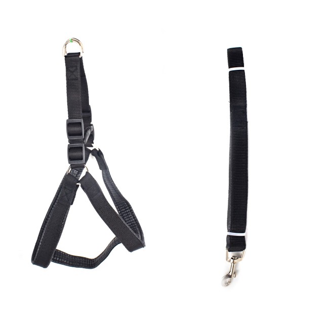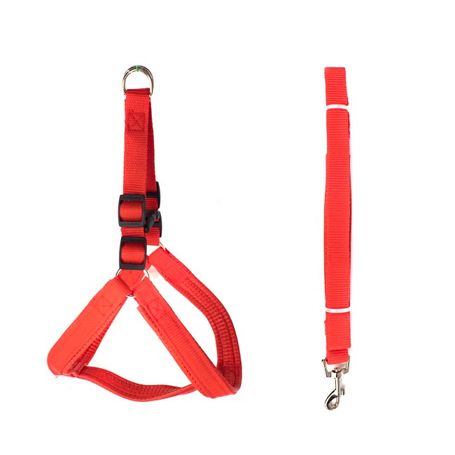 Arnés con hebilla doble en la parte superior, broche de seguridad y anillos tipo D para fijar la correa. Material: Poliéster, metal Color: Rojo, azul, negro, verde Disponible: Razas medianas Medidas: TALLA S CUELLO 30-41 CM TORSO MIN-MAX 41-53 CM PESO MAXIMO – APROX 5-11 KG, TRAILLA 1,20 CM