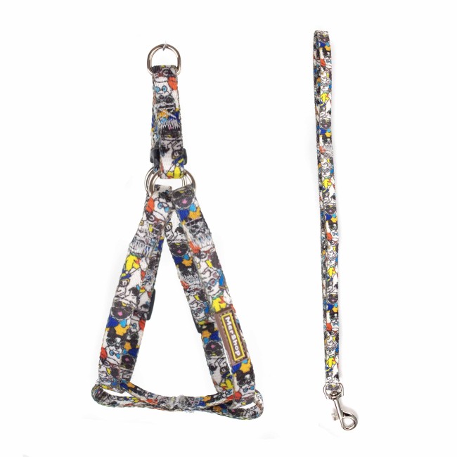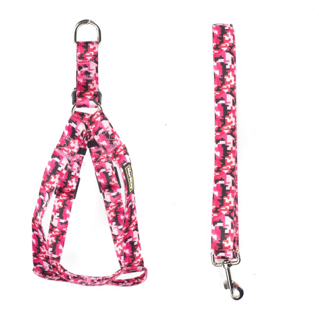 Arnés con estampado, cuenta con hebillas ajustables, broche de seguridad y anillos tipo D para fijar la correa. Material: Poliéster, metal Estampado: Rosa militar, azul militar, perritos, paw patrol Disponible: Razas pequeñas y medianas.