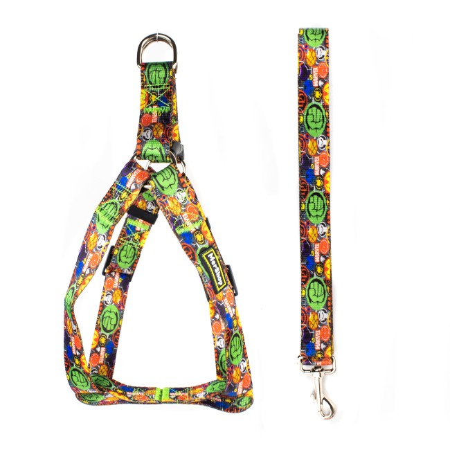 Arnés estampado con hebillas ajustables, broche de seguridad y anillos tipo D para fijar la correa. Material: Poliéster, metal Estampado: Marvel, Paw patrol, Dragon Ball, Pokemon Disponible: Razas pequeñas, medianas y grandes. Medidas: TALLA S CUELLO 30-41 CM TORSO MIN-MAX 41-53 CM PESO MAXIMO – APROX 5-11 KG TALLA M: CUELLO 40-53 CM TORSO MIN-MAX 56-58 PESO MAXIMO – APROX 11-23 KG TALLA L: CUELLO 46-66 CM TORSO MIN-MAX 61-76 CM PESO MAXIMO APROX 23-36 KG TALLA XL: CUELLO 70-81 CM TORSO MIN-MAX 70-82 CM PESO MAXIMO – APROX 36-50 KG