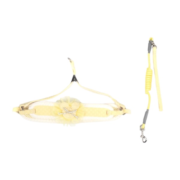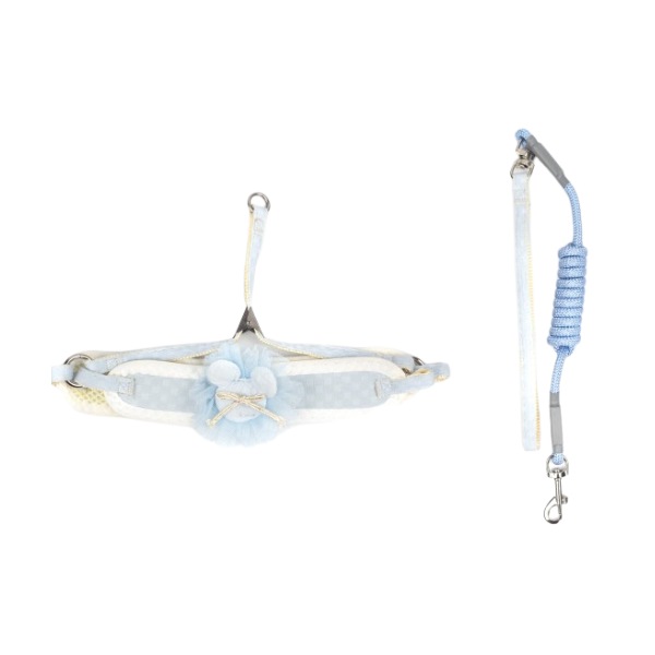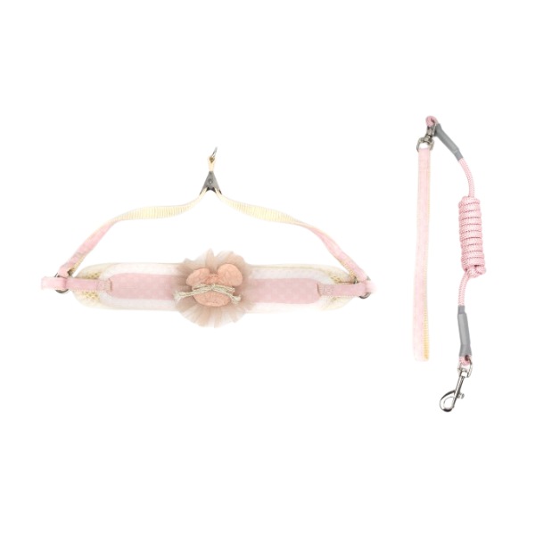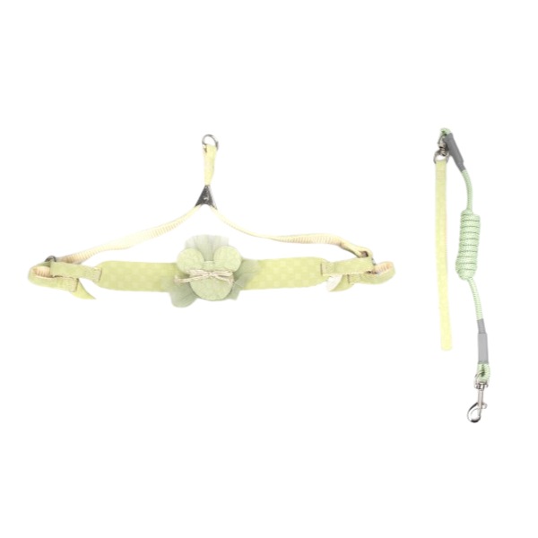 Arnés con correa, cuenta con gancho para ajustar y anillo tipo D para fijar la correa. Material: Poliéster Color: Beige, verde, azul, rosado Disponible: Razas pequeñas.