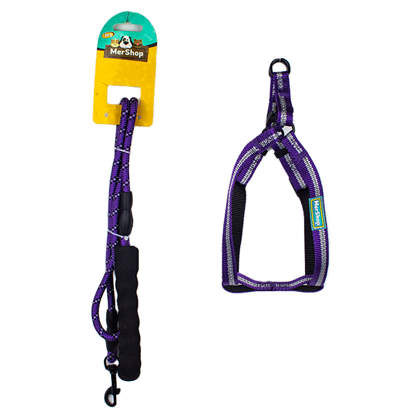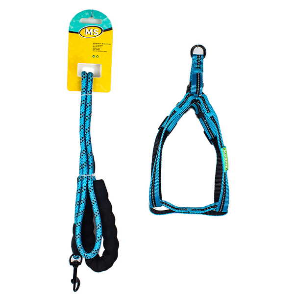 Arnés tejido con patrones de rayas, cuenta con hebillas ajustables, broche de seguridad, correa redonda y anillos tipo D para fijar la correa. Material: Poliéster Color: Negro, rojo, azul, verde, morado. Disponible: Razas pequeñas medianas y grandes.