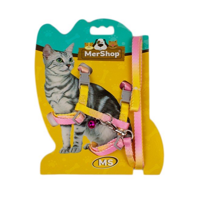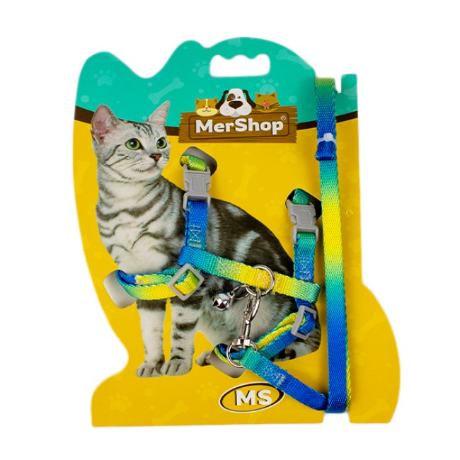 Arnés tipo H con cascabel, cuenta con hebillas ajustables, broches de seguridad y anillo tipo D para fijar la correa. Material: Poliéster Estampado: Gris, amarillo/azul, amarillo/rosado, lila/rosado, verde/morado Disponible: Razas pequeñas
