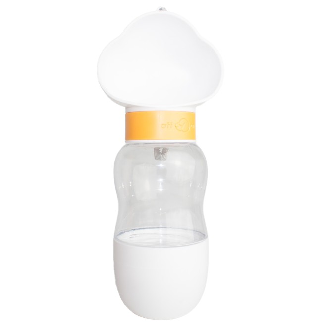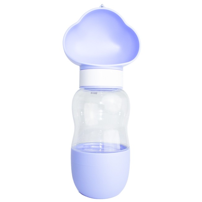 Bebedero portátil para mascotas, cuenta con anillo de sellado para evitar fugas de agua, correa de muñeca para transportar y compartimento para almacenar comida. Material: Plástico Color: Morado, azul Disponible: Razas pequeñas y medianas