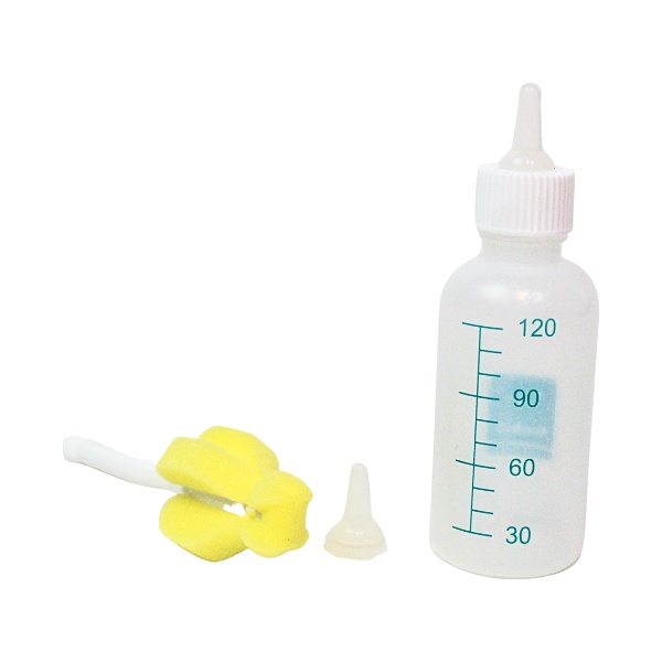 Biberon para mascotas especialmente diseñado para cachorros, gatos o conejos pequeños, cuenta con escala en el costado para controlar el volumen de alimentación diaria, cepillo de limpieza y chupón de repuesto. Material: Plástico, caucho Color: Blanco Disponible: Razas pequeñas de aproximadamente 1 mes de edad.