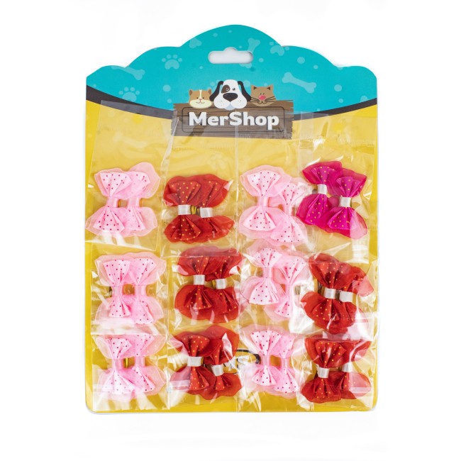 Estiliza a tus mascotas con estos hermosos moños. Cuenta con cintilla de alambre cubierta de papel brillante. Material: Tela, metal Presentación: 12 UND Disponible: Razas medianas y grandes de pelaje largo.