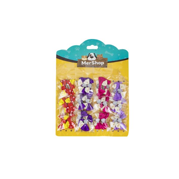 Estiliza a tus mascotas con estos hermosos clip de moño. Cuenta con gancho de metal. Material: Tela, metal Presentación: 12 UND Disponible: Razas medianas y grandes de pelaje largo.