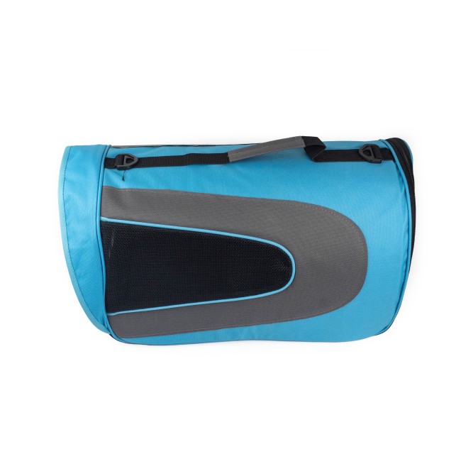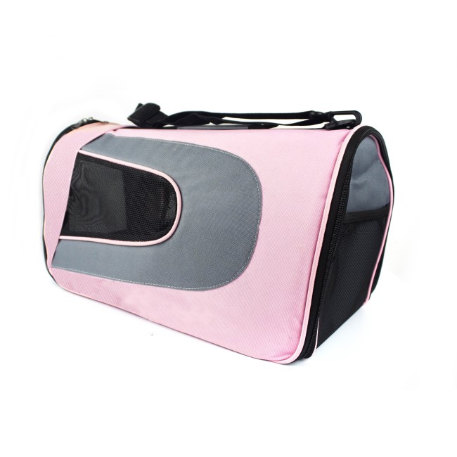 Guacal de tela con visores laterales en malla, cuenta con tapete y correa. Material: Poliéster Color: Rosado, azul Disponible: Razas pequeñas