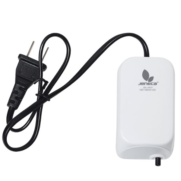 Bomba de aire de una salida para acuario Material: PVC Poder: 2.8 W Litros Max: 1.65 L/H