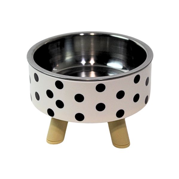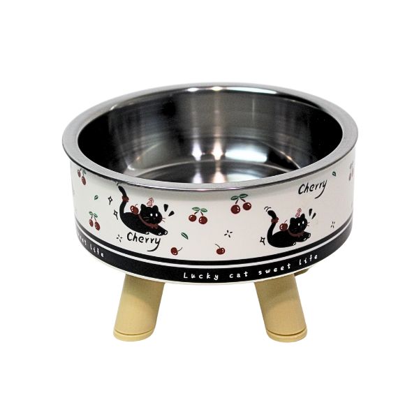 Comedero elevado con bowl de acero removible, cuenta con patas desarmables. Material: Acero, plástico Diseño: Puntos, cuadros, cerezas Disponible: Razas pequeñas