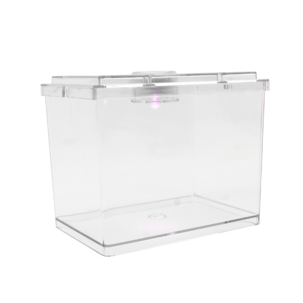 Caja de cría o aislamiento para peces, cuenta con luz led superior y pila de repuesto. Material: Plástico Color: Disponible en la foto