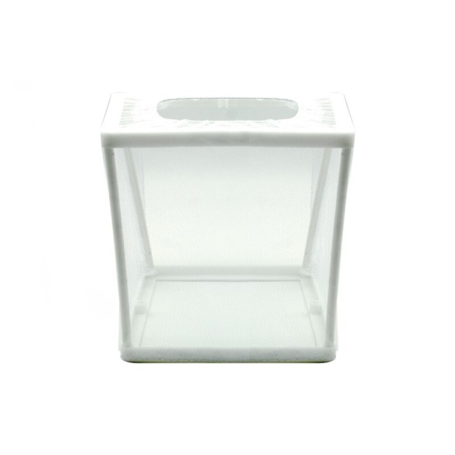 Caja de incubación de malla fina para peces, cuenta con un diseño compacto, adecuado para todo tipo de acuarios. Sencillo de montar. Material: Plástico, gasa Presentación: Blanco.