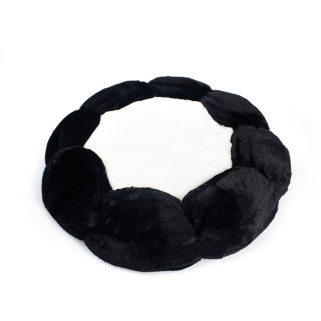 Cama para mascotas con diseño de flor, cuenta con forraje de felpa suave. Cómoda y resistente. Material: Poliéster, sintético Color: Azul, negro, café Disponible: Razas pequeñas Medidas: PEQUEÑA: Largo40 cm *Ancho40 cm*Alto16 cm MEDIANA: Ancho 56 cm