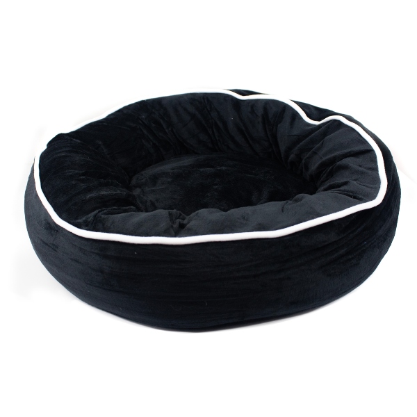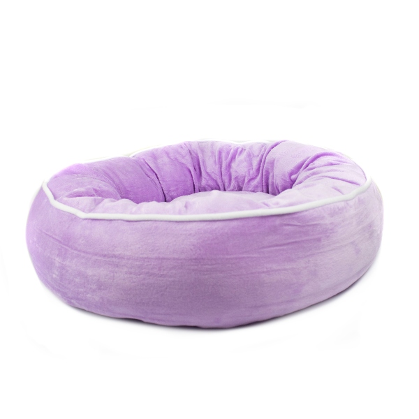 Cama redonda tipo cuna para mascotas. Material: Poliéster Color: Negro, café, lila. Disponible: Razas pequeñas y medianas.