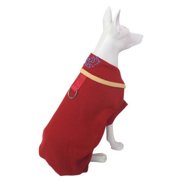Camisa de cuello para mascotas, cuenta con anillo tipo D para fijar la correa. Material: Poliéster Color: Verde, rojo, azul Disponible: Razas pequeñas, medianas y grandes