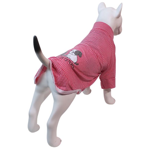 Camisa de rayas con estampado para mascotas. Material: Poliéster Color: Rojo, café, rosado, morado Disponible: Razas pequeñas