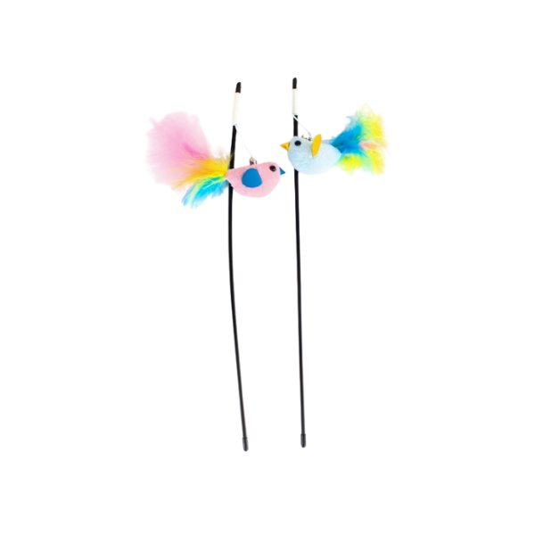 Caña para gatos, cuenta con juguete de felpa en forma de pajaro. Material: Poliéster, caucho Color: Azul, rosado Disponible: Razas pequeñas.