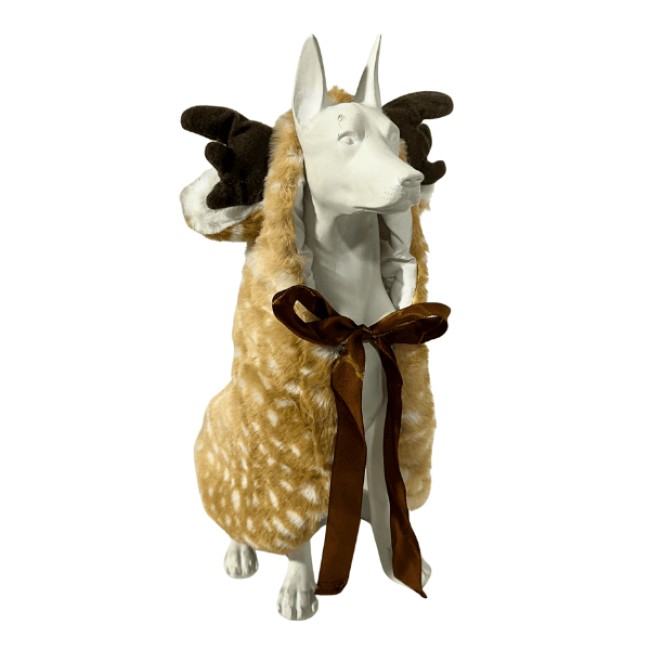 Capa de navidad de reno con acabado afelpado y patrón con puntos. Cuenta con tirilla para ajustar al cuello. Material: Poliéster Color: Disponible en la foto Disponible: Razas pequeñas