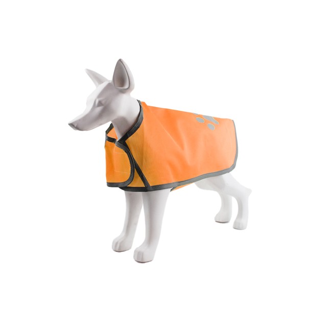 Capa reflectiva para mascotas, cuenta con velcro ajustable. Material: Poliéster Color: Verde, naranja, negro Disponible: Razas pequeñas y medianas