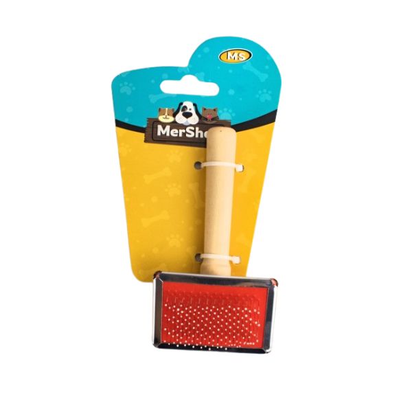 Cepillo carda con cerdas tipo púas ideales para desenredar y alisar el pelaje, cuenta con mango ergónomico. Material: Acero inóxidable, madera Color: café Disponible: Razas pequeñas, medianas y grandes de pelaje largo o rizado.