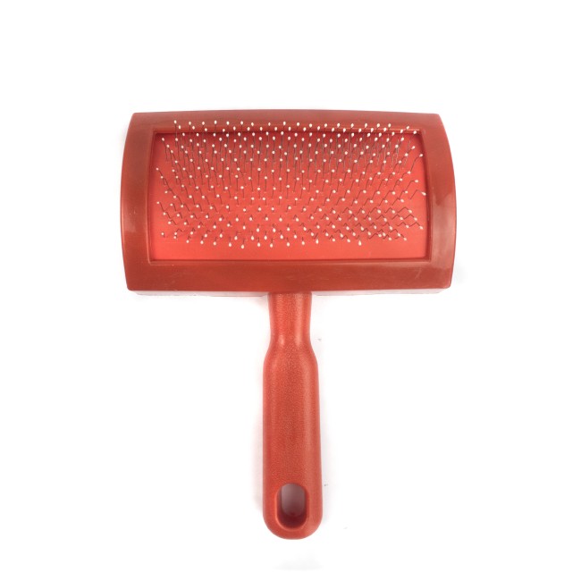 Cepillo carda con cerdas tipo púas ideales para desenredar y alisar el pelaje, cuenta con mango ergónomico. Material: Acero inóxidable, plástico Color: Azul, rojo Disponible: Razas pequeñas y medianas de pelaje largo o rizado.