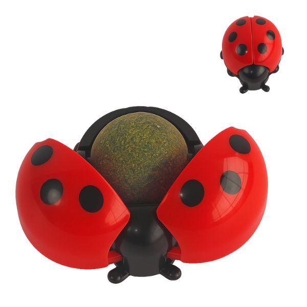 Juguete mariquita con bola de catnip, cuenta con adhesivo doble para fijar a superficies planas. Material: Plástico, catnip Color: Disponible en la foto Disponible: Razas pequeñas.