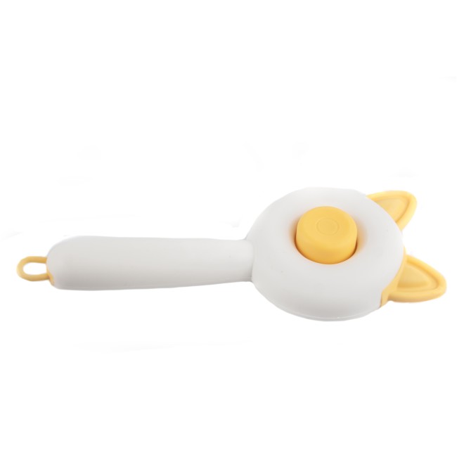 Cepillo con orejitas para mascotas, cuenta con botón trasero para expulsar le pelo. Material: Plástico Color: Verde, naranja Disponible: Razas con pelaje largo
