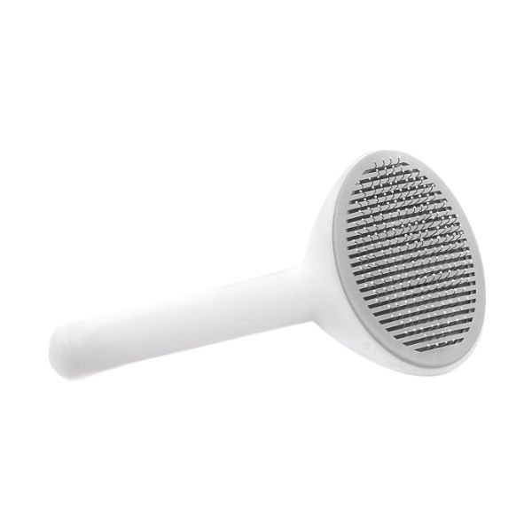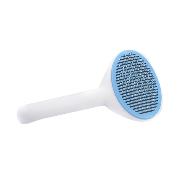 Cepillo con cerdas de metal, mango antideslizante y botón trasero para expulsar el pelo. Material: Metal, plástico Color: Gris, azul, rosado Disponible: Razas pequeñas y medianas con pelaje largo.