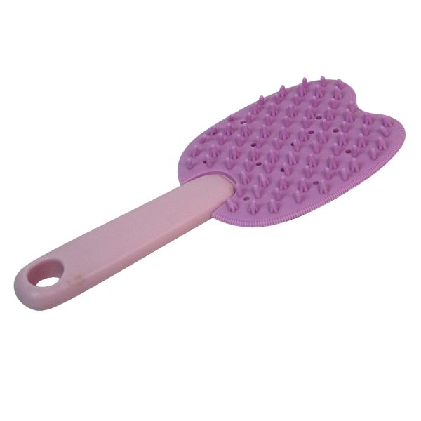 Cepillo multiusos, cuenta con doble cara una con cerdas de silicona ideal para cepillar el pelo muerto y la otra con patrón de rayas para eliminar el pelo de muebles y ropa. Material: Plástico, silicona Color: Azul, violeta Disponible: Razas pequeñas y medianas