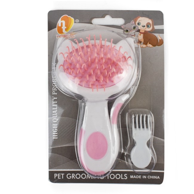 Cepillo en forma de gato, cuenta con cerdas de plástico y mango con antideslizante. Viene con peine pequeño. Material: ABS Color: Azul, rosado Disponible: Razas pequeñas