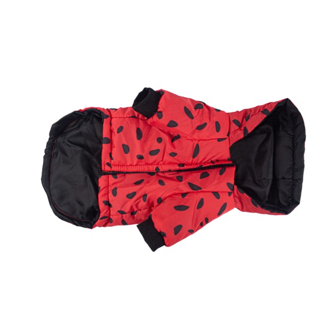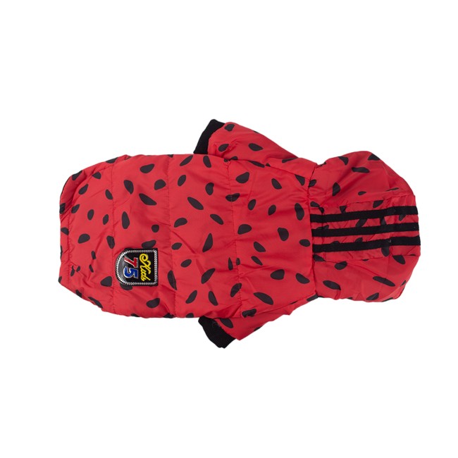Chaqueta impermeable con capota, cuenta con velcro ajustable. Material: Poliéster Color: Rojo, gris, morado, beige Disponible: Razas pequeñas y medianas.