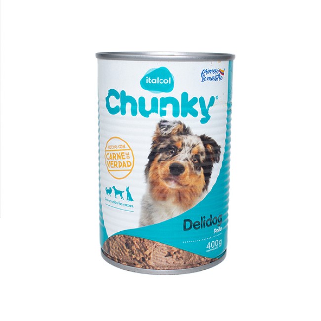 Alimento húmedo en lata, es una deliciosa comida para perros que será ideal para complementar la alimentación diaria de tu mascota. Elaborado con verdadera carne de pollo. Ingredientes: Agua, pasta de pollo, harina de trigo, aceite de pollo, proteína concentrada de soya, extracto de levadura, cloruro de sodio, perejil deshidratado, goma guar, vitamina E, vitamnina A, vitaminas del complejo B, aceite de romero, ácido citrico. Presentación: Lata x 400g Disponible: Para perros de todas las razas mayores a 6 meses de edad.