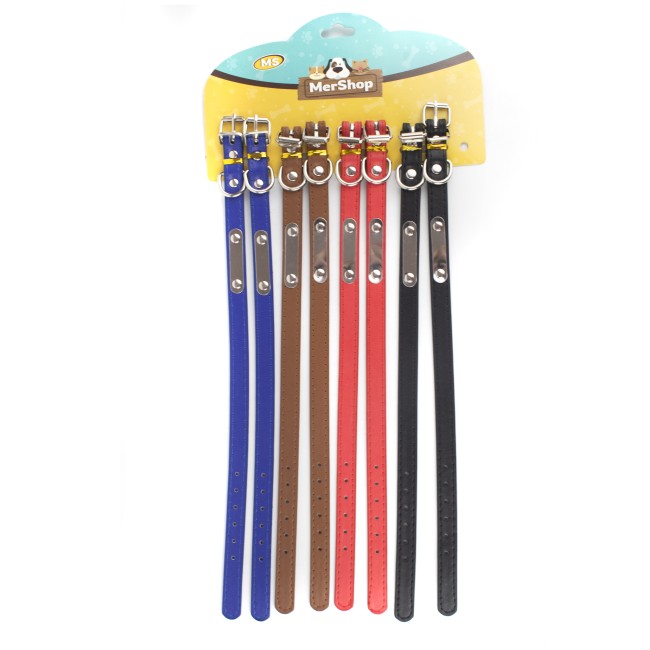 Collar con taches, cuenta con 6 puntos para ajustar a la medida y anillo tipo D para fijar la correa. Material: Cuerina, metal Color: Rojo, negro, azul, café Disponible: Razas pequeñas. Medidas: Largo37 cm * Ancho 1.5 cm
