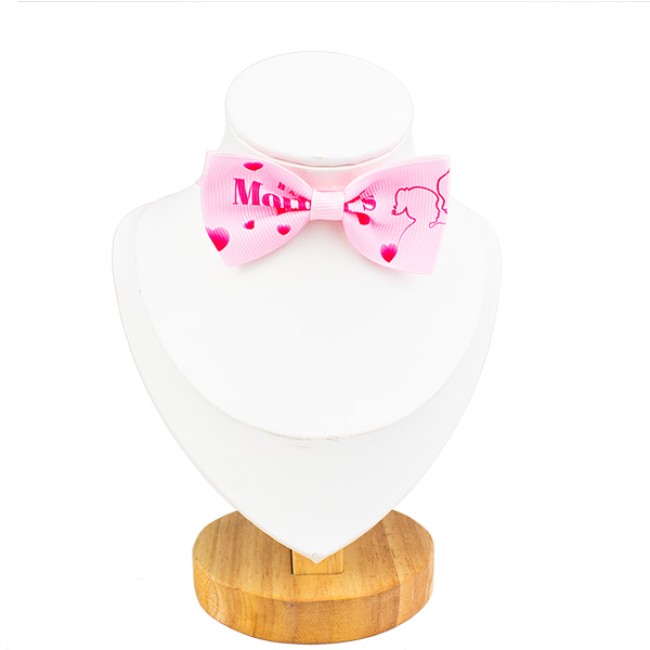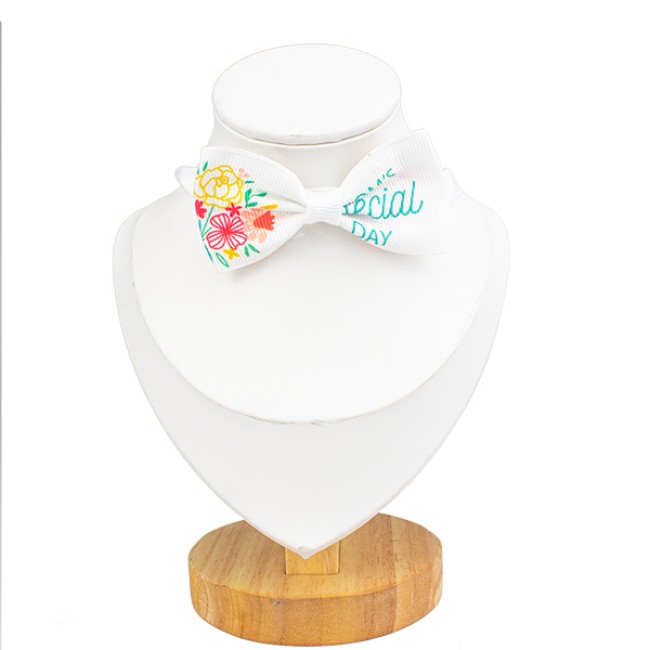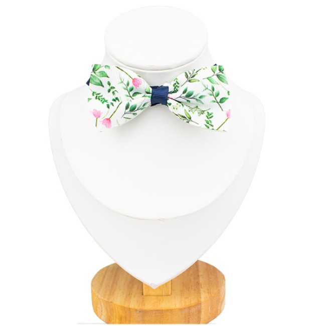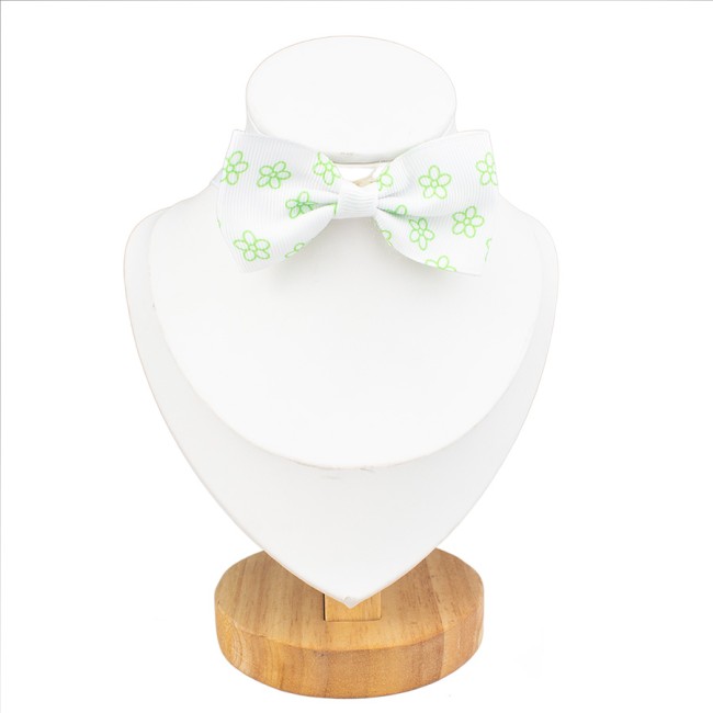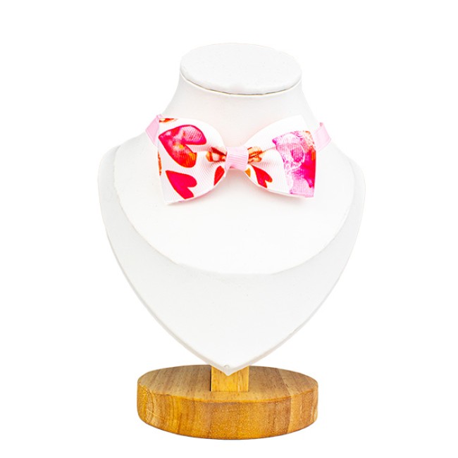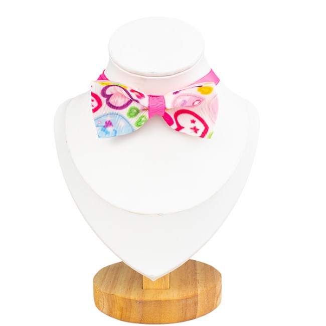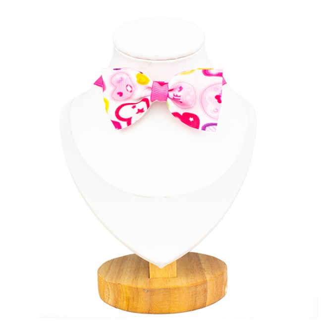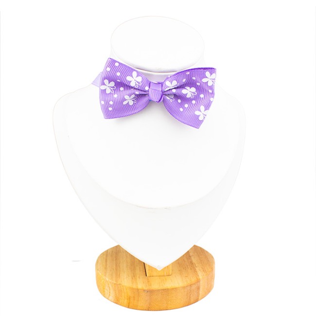 Collar con moño para mascotas, cuenta con hebilla ajustable y broche de seguridad Material: Poliéster Color: Lila, blanco flores de colores, blanco flor verde, fucsia con blanco, café, fucsia con blanco corazón, lila mariposa, azul oscuro con blanco, rosado, rosado con blanco corazón. Disponible: Razas pequeñas