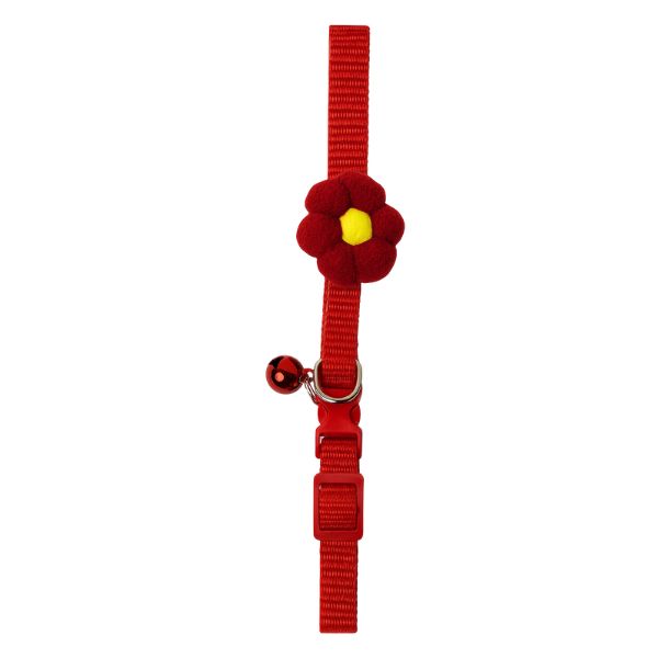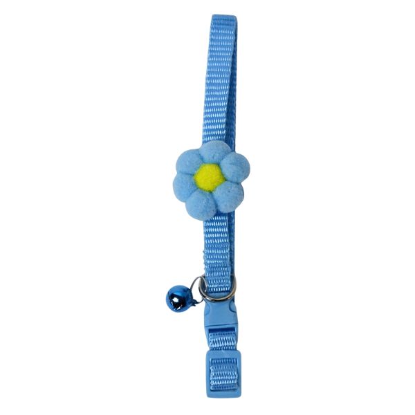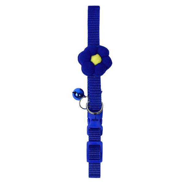 Collar con flor para mascotas, cuenta con cascabel, hebilla ajustable, anillo tipo D y broche de seguridad. Material: Poliéster Color: Rosado, azul oscuro, rojo, azul claro Disponible: Razas pequeñas