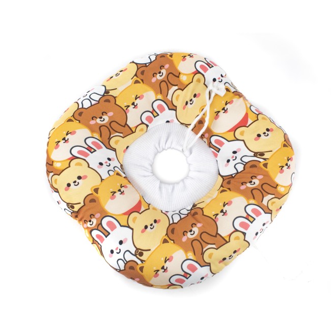 Collar isabelino tipo dona cuenta con cordón para ajustar al cuello. Material: Poliéster Color: Amarillo, rosado, verde, café Disponible: Razas pequeñas y medianas Medidas: Talla S: 17-27cm Talla M: 20-32cm Talla L: 28-38cm