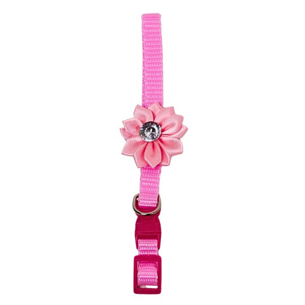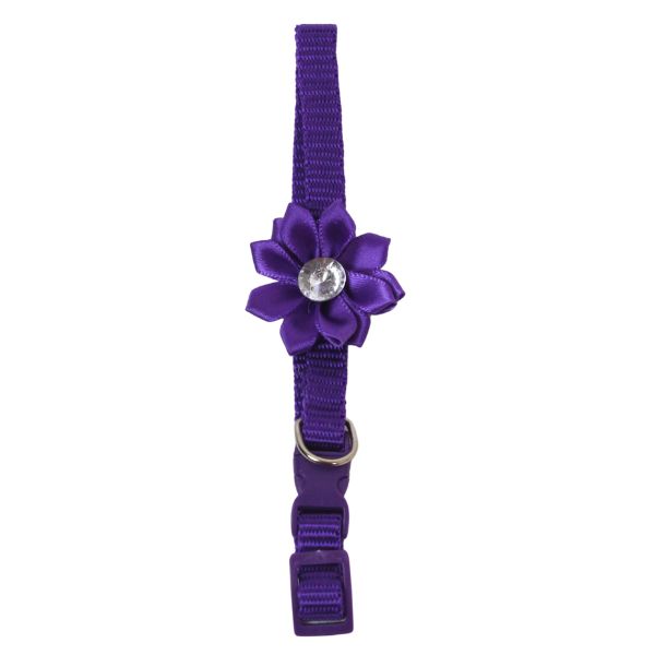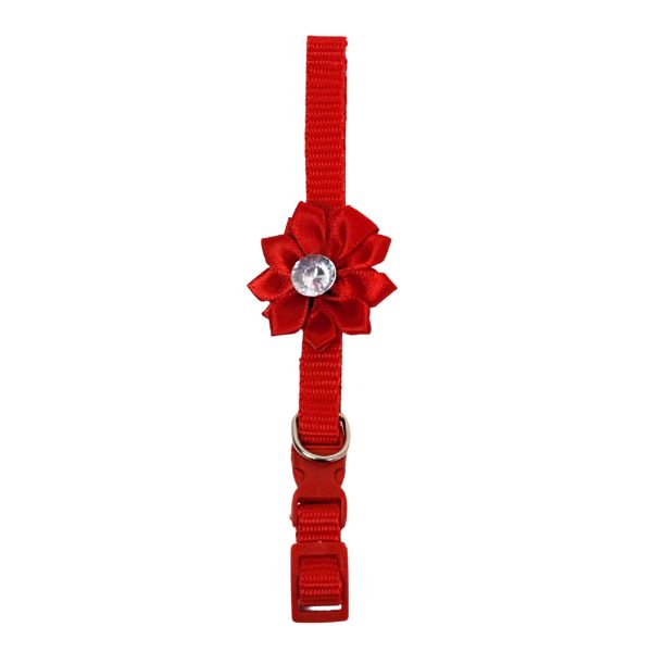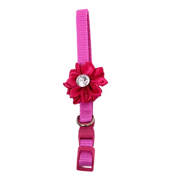 Collar con flor para mascotas, cuenta con hebilla ajustable, anillo tipo D y broche de seguridad. Material: Poliéster Color: Morado, rojo, verde, rosado, azul, fucsia Disponible: Razas pequeñas