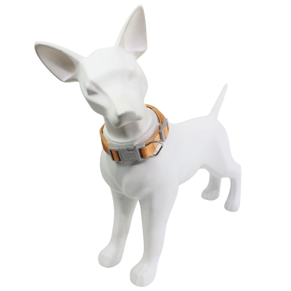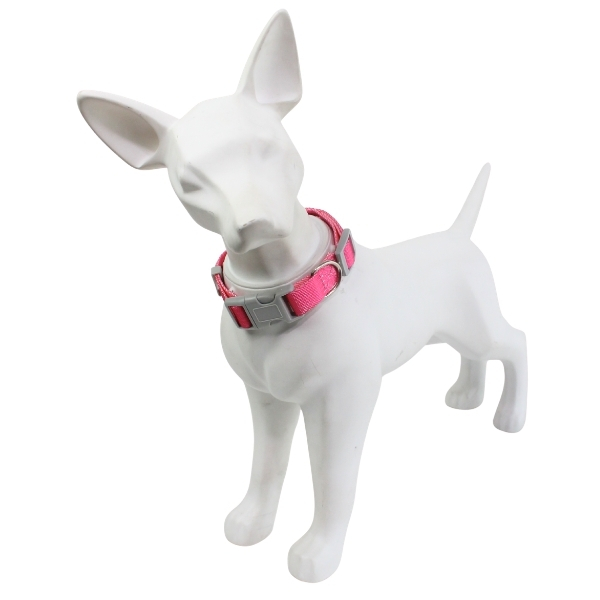 Collar bicolor para mascotas, cuenta con hebilla ajustable, anillo tipo D para fijar la correa y broche de seguridad. Material: Poliéster Color: Fucsia con rosado, marrón con amarillo, lila con amarillo Disponible: Razas pequeñas, medianas y grandes