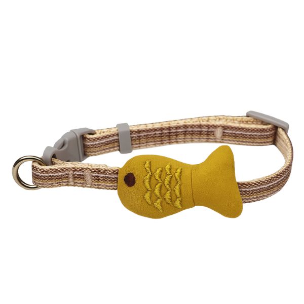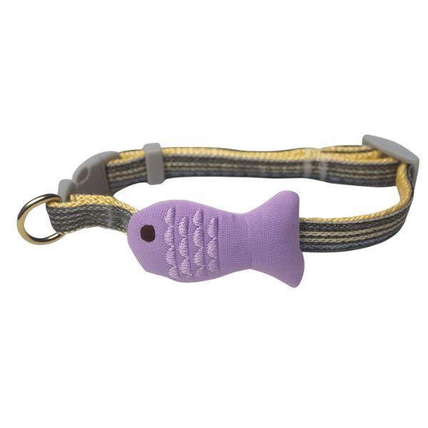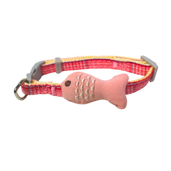 Collar con pescado de felpa decorativo, cuenta con diseño estilo tartán, hebilla ajustable, broche de seguridad y anillo tipo D para fijar la correa. Material: Poliéster Color: Marrón con amarillo, rojo con rosa, negro con lila, azul con verde Disponible: Razas pequeñas